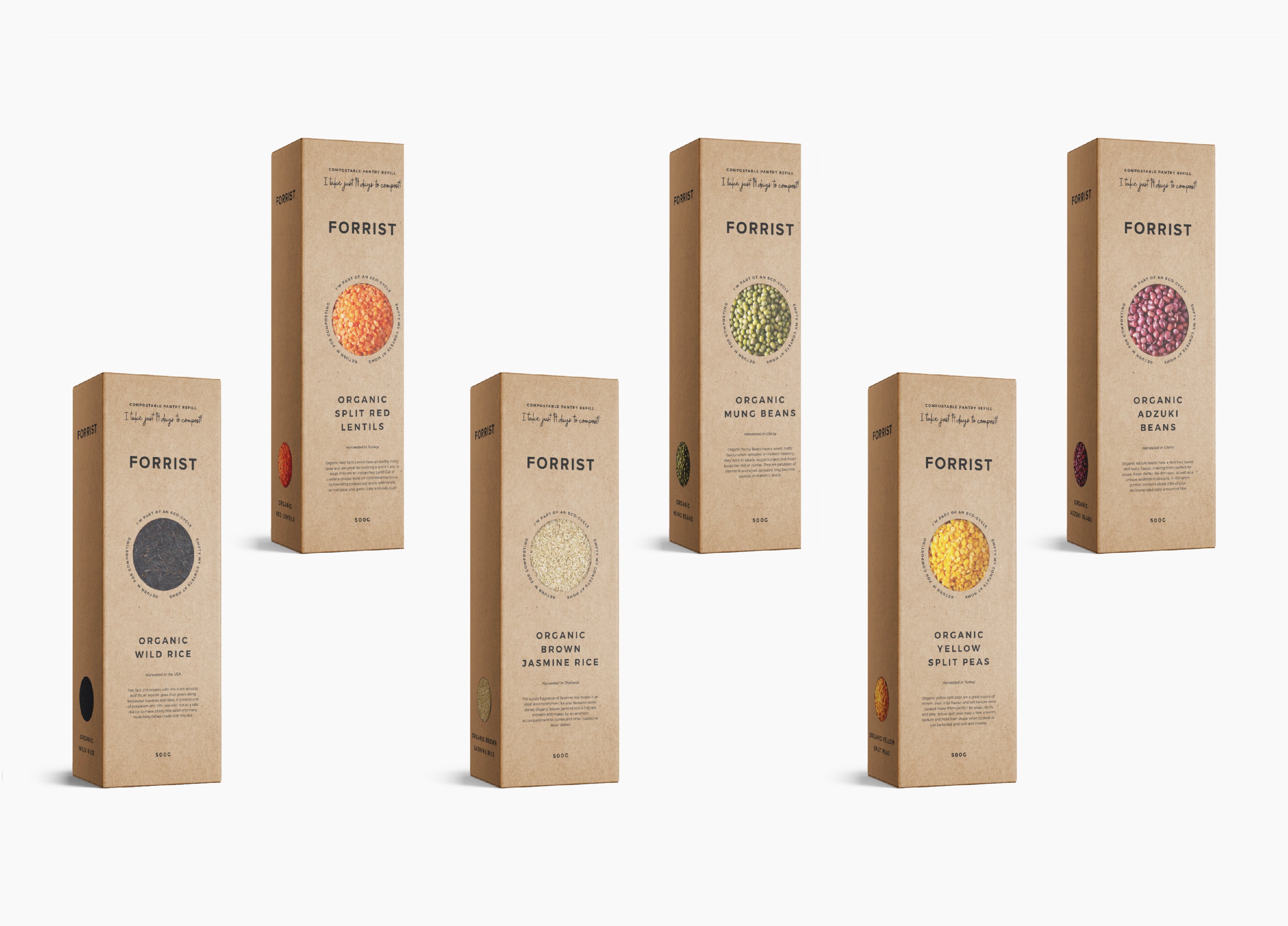 Our range includes over 50 organic, plant-based pantry essentials, all packaged in eco-friendly, compostable kraft boxes.