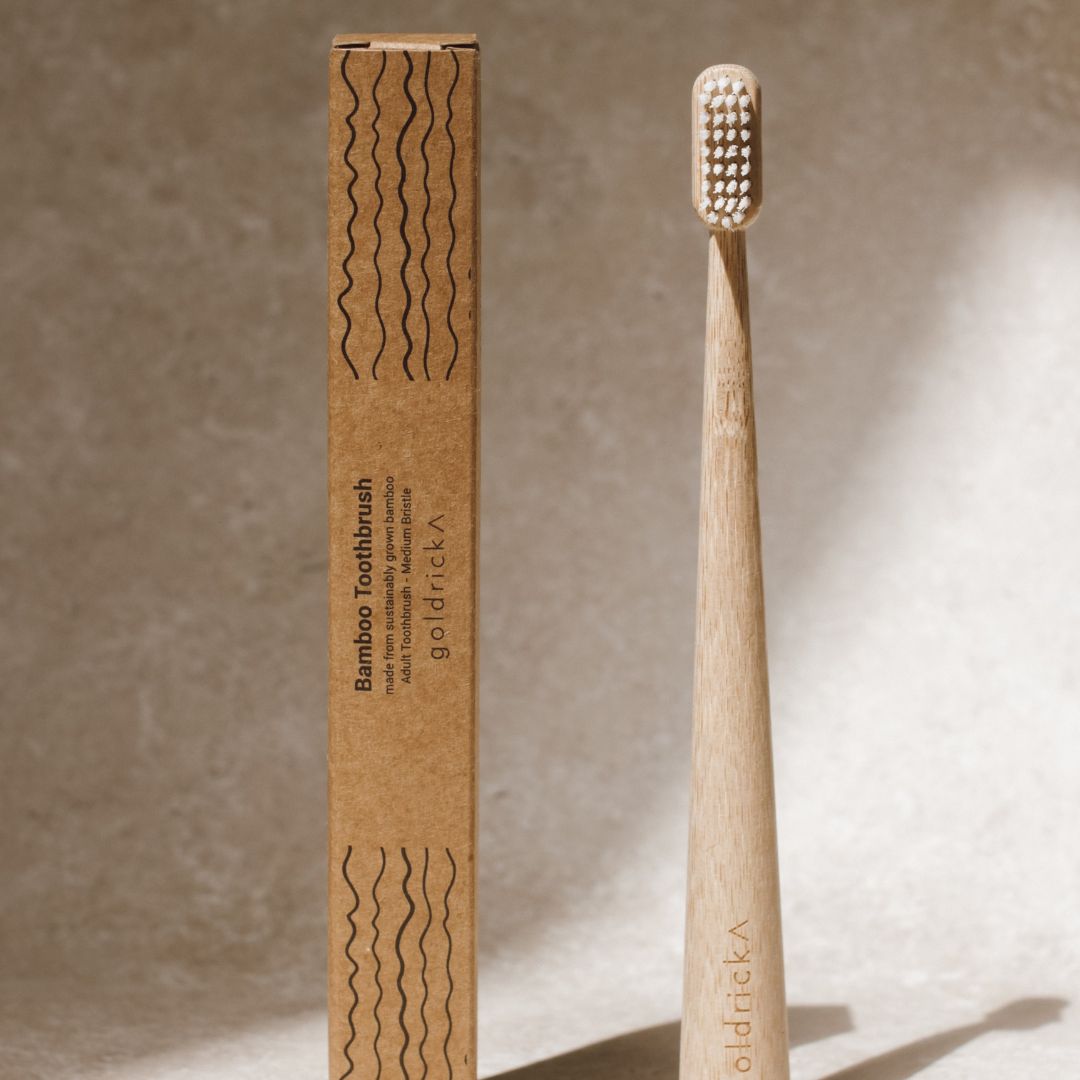 Goldrick's soft bamboo toothbrush is environmentally friendly. They are made out of natural moso bamboo, which is one of the fastest growing plants in the world, making it a very sustainable material. It will last you just as long as any mass-produced plastic toothbrush.